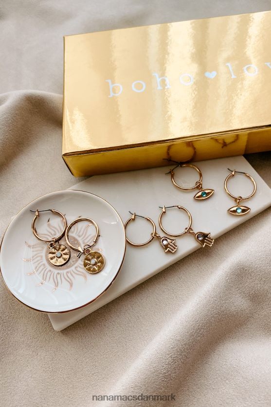 giv dette 3-par øreringesæt væk som gave eller køb måske også en til dig selv! dette sæt kommer også med et lille smykkefad!