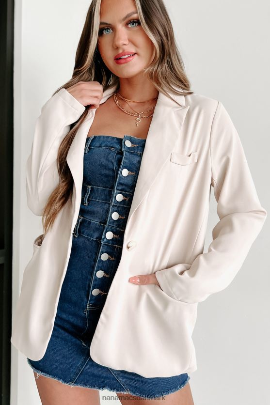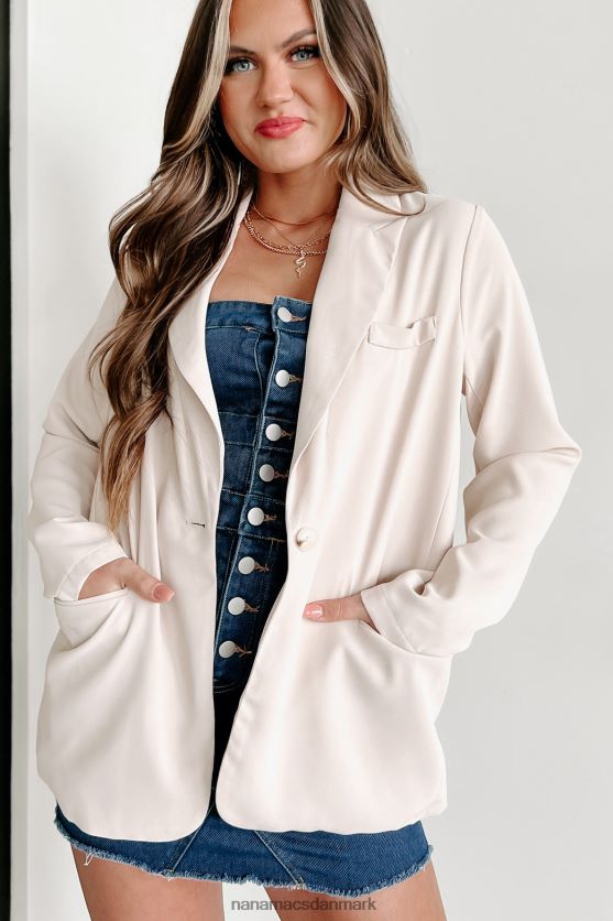 slå de mandagsblues ved at være begejstret for dit arbejdstøj! lad dig ikke snyde af det enkle design med en enkelt knap på denne beige blazer. det er den perfekte neutrale tone, og på grund af dens lidt overdimensionerede pasform kan den let dresses op eller ned!