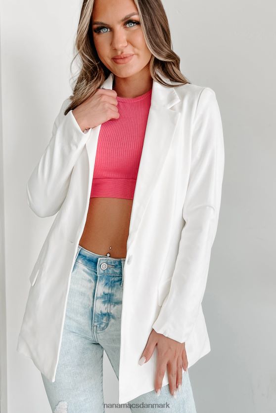 denne klassiske hvide blazer emmer af tidløs stil med et revers med kærv, enkelt knaplukning og frontlommer. det er det perfekte stykke til at klæde ethvert outfit på, foret for at sikre ultimativ komfort hele dagen lang.