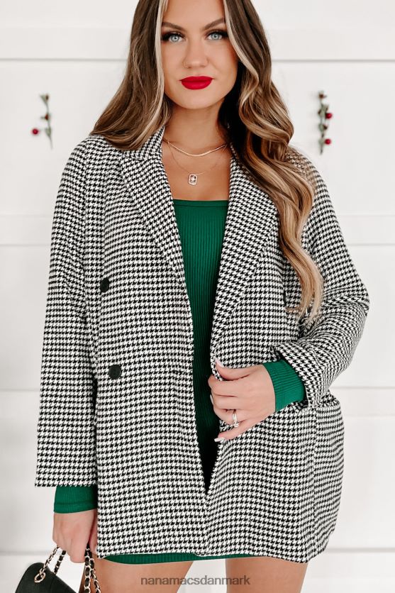 denne houndstooth blazer er bogstavelig talt efterår perfektion! p>selv: 80% polyester, 10% bomuld, 10% akryl. for: 100 % polyester /p>