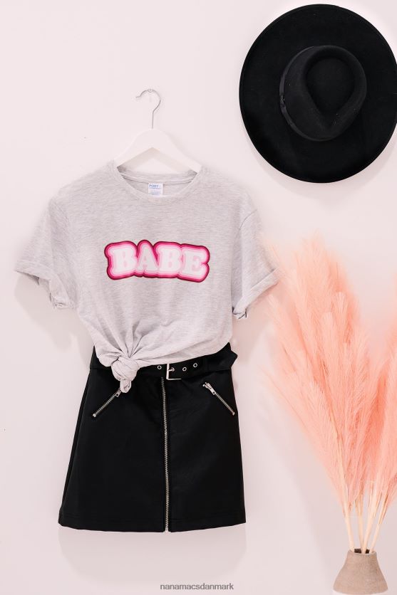 du ved, du er en babe, men vi vil have dig til at fortælle verden! du kan gøre det med denne aske og lyserøde ''babe'' grafiske t-shirt!