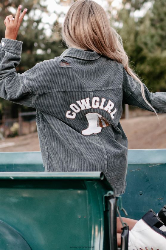 kalder alle cowgirls, denne nødstedte fløjlsjakke har pailletter, cowgirl/støvlemærke!