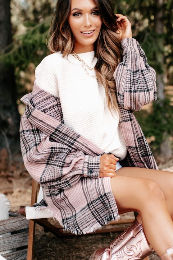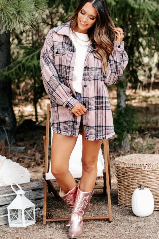 denne plaid, overdimensionerede shacket er, hvad bogstavelig efterår perfektion er lavet af! p>100 % polyester /p>
