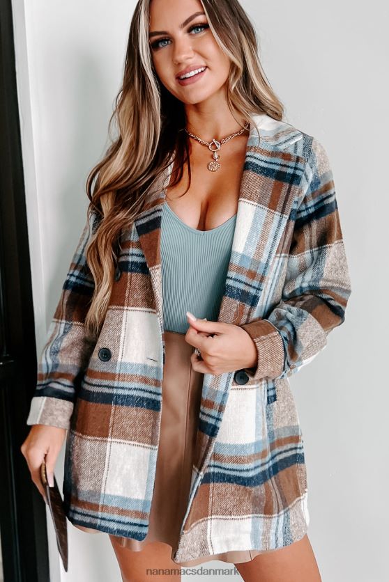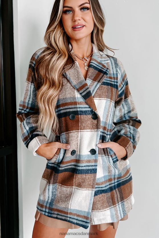 forgrene sig fra vores eutrale frakke, og få fat i denne lette, plaid frakke! den blå & brune kombination er perfekt!