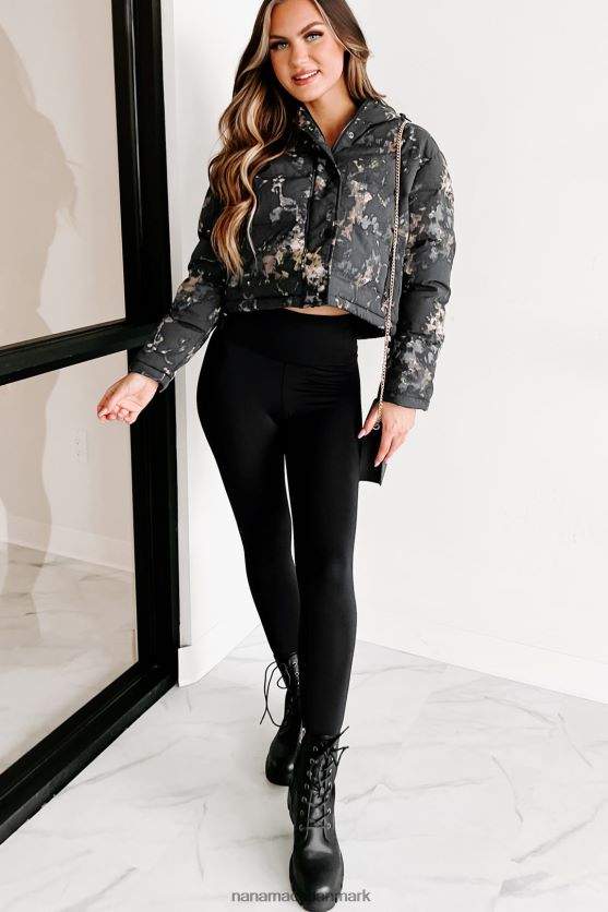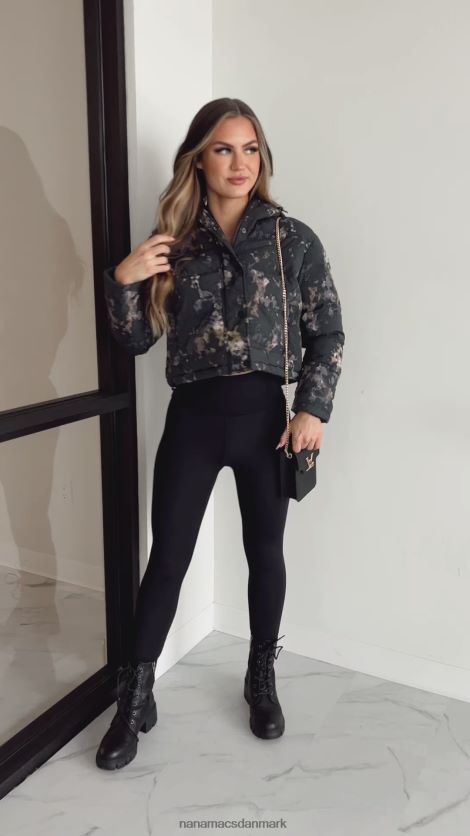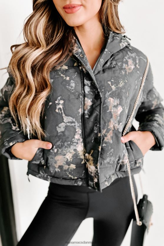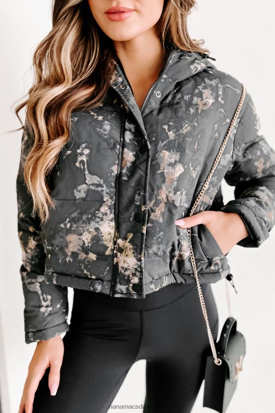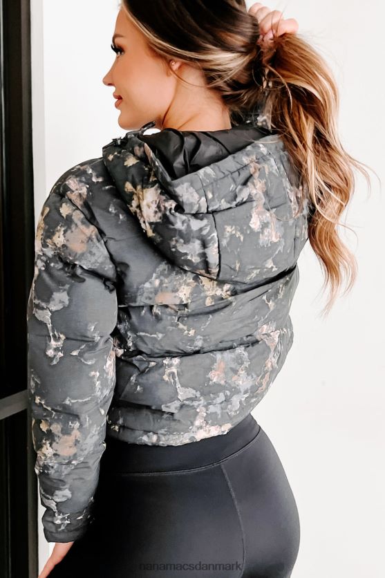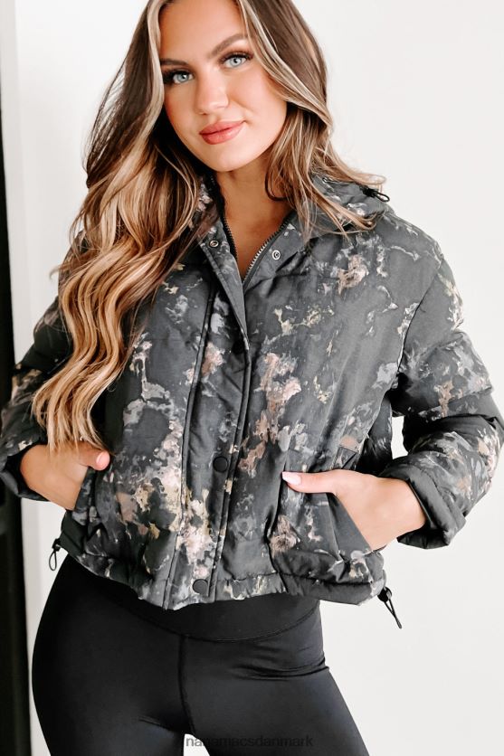 Træd ud i denne mønstrede jakke! med sit abstrakte mønster og pufferdetalje vil den holde dig varm, plus den runde lynlås- og trykknap-lukning sikrer, at du altid er dækket!