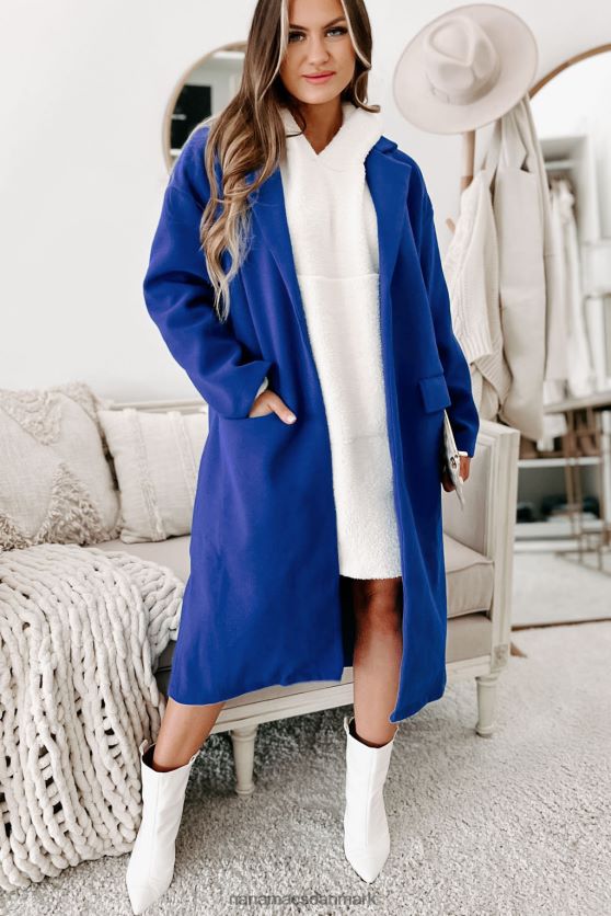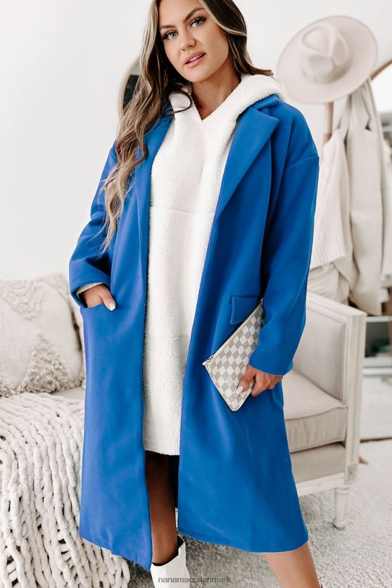 vær modig og varm i denne blå frakke foran! p>80 % polyester, 20 % viskose