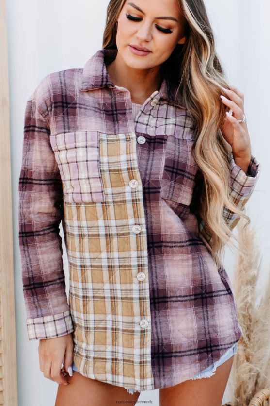 forgrene sig fra dine grundlæggende, plaid jakker med denne quiltede! det blandede plaiddesign er så trendy!