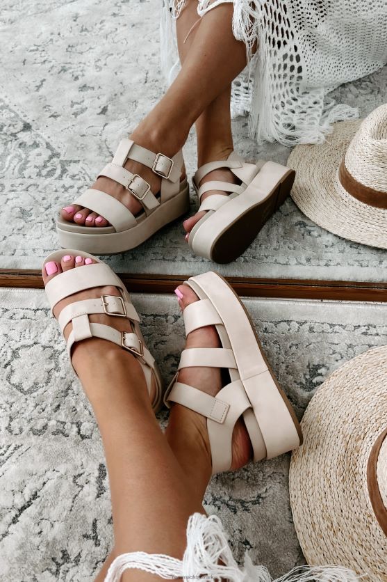 tjek disse trendy platformssandaler med overdel i naturfarvet imiteret læder og justerbare spænderemme! det åbne design er perfekt til at vise din pedicure frem, og 1,5'' platformen tilføjer noget ekstra højde til dit look. perfekt til en dag ude eller en aften i byen.