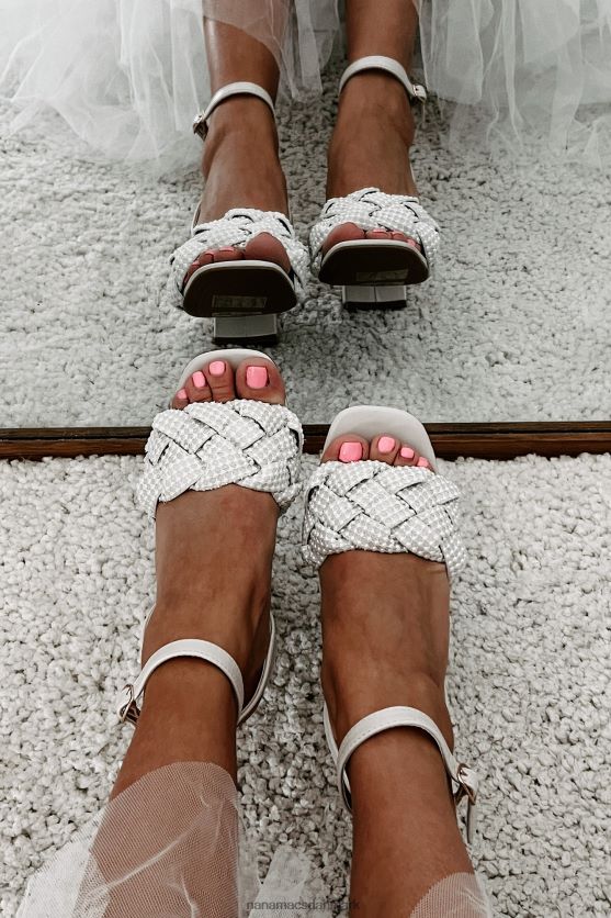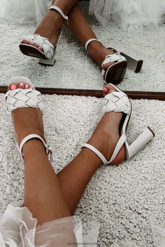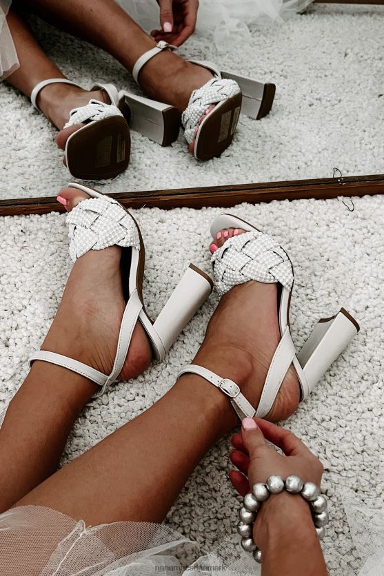 tjek disse elfenbensfarvede sandaler - de er helt sikkert iøjnefaldende! med en trendy firkantet tå og 4'' blokhæl giver de dig ekstra højde. Det, der virkelig adskiller dem, er deres flettede stropper, komplet med dejlige perledetaljer. plus, du kan sikre dig, at de passer helt rigtigt med den justerbare ankellås. rock disse og drej hovedet!