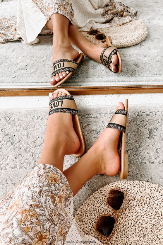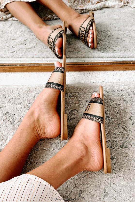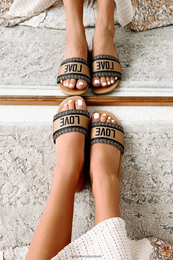 elsker grafiske glidesandaler NanaMacs XJPBDL4003 sort/tan
