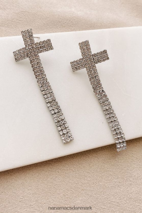 fashionable velsignelser rhinestone cross øreringe NanaMacs XJPBDL4303 sølv
