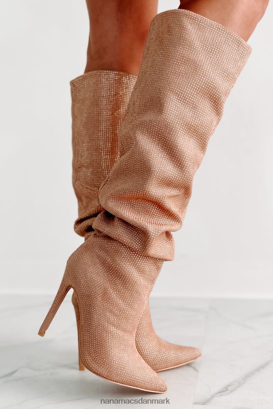 stød ærefrygt slouchy rhinestone støvler NanaMacs XJPBDL3858 beige